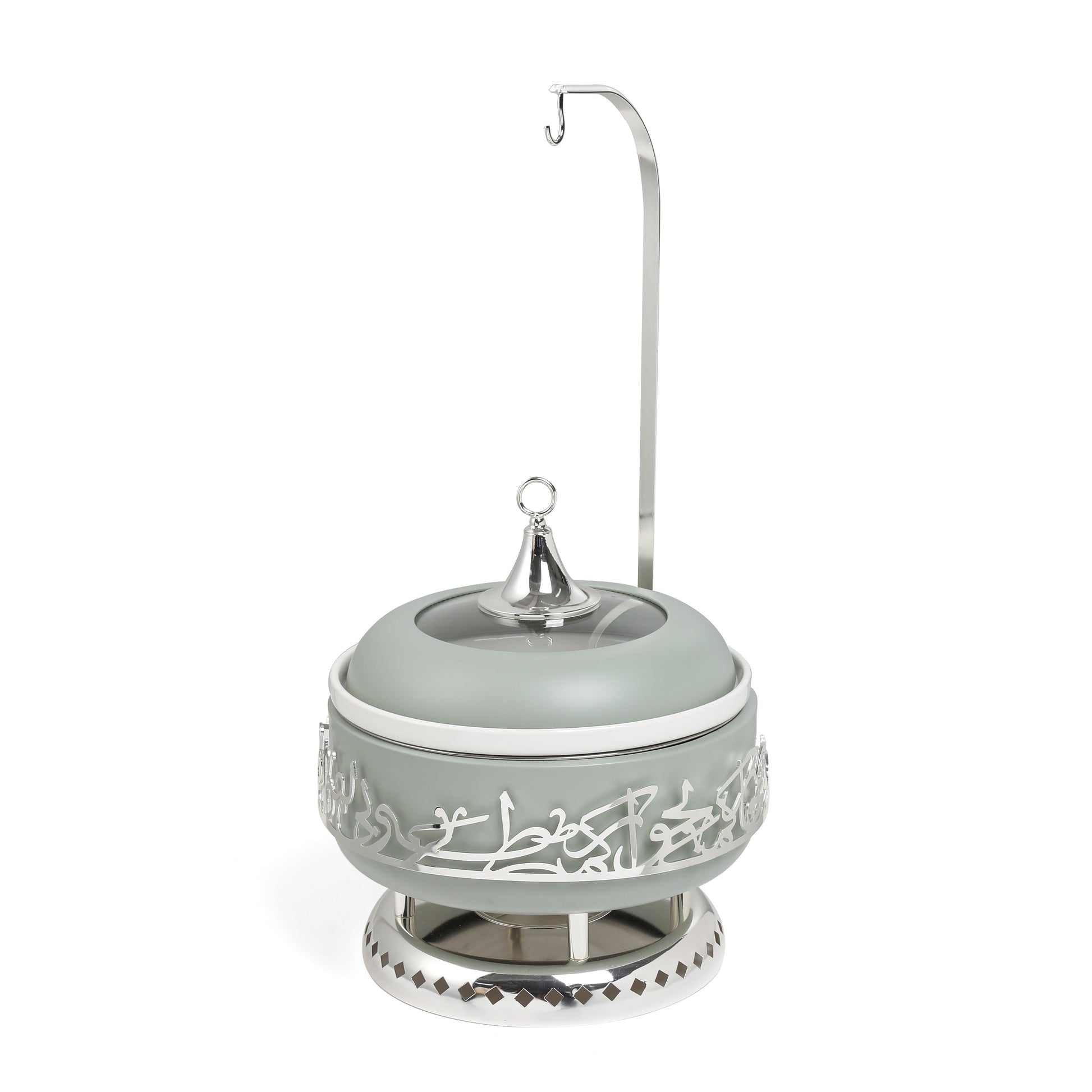 The Jiwar - 6 Liters Chafer is designed for those who need a larger serving capacity without sacrificing style. Built to impress, this chafer features an upgraded design with a sturdy stainless steel base, a water bowl for even heat distribution, and a porcelain bowl that adds an elegant touch to any event. The chafer’s generous 6L capacity makes it perfect for serving hearty main courses, buffets, or large family gatherings. A transparent glass lid keeps your food fresh and visible, while the lid hanger allows for convenient and organized service. Powered by Sterno, this chafer delivers consistent heat, keeping your food at the ideal serving temperature throughout your event. Whether you're hosting a large-scale event, catering, or serving a buffet-style meal, the Jiwar - 6 Liters Chafer offers both functionality and sophistication.